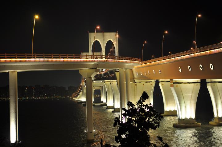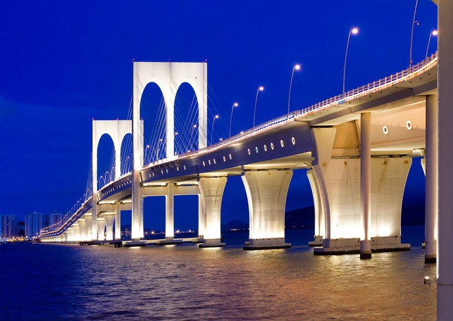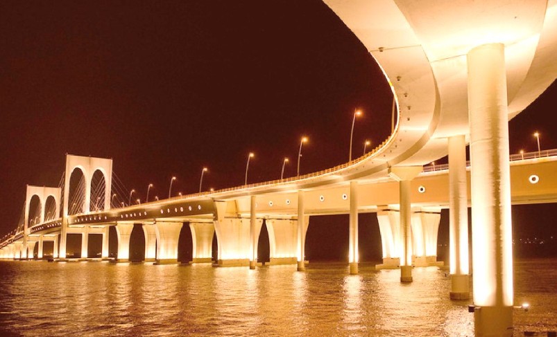 澳門地方小小,但已有三條跨海大橋,方便人們往來澳門半島及氹仔,這三條大橋分別是總長2.5公里的嘉樂庇總督大橋(公交及的士專用)、4.5公里的友誼大橋(全澳最長),以及這次介紹的西灣大橋。這座新橋只有2.2公里長,它的出現(xiàn),明顯緩解了舊有兩座大橋的汽車流量,同時(shí)亦大大改善了澳門本島與離島之間的交通狀況。