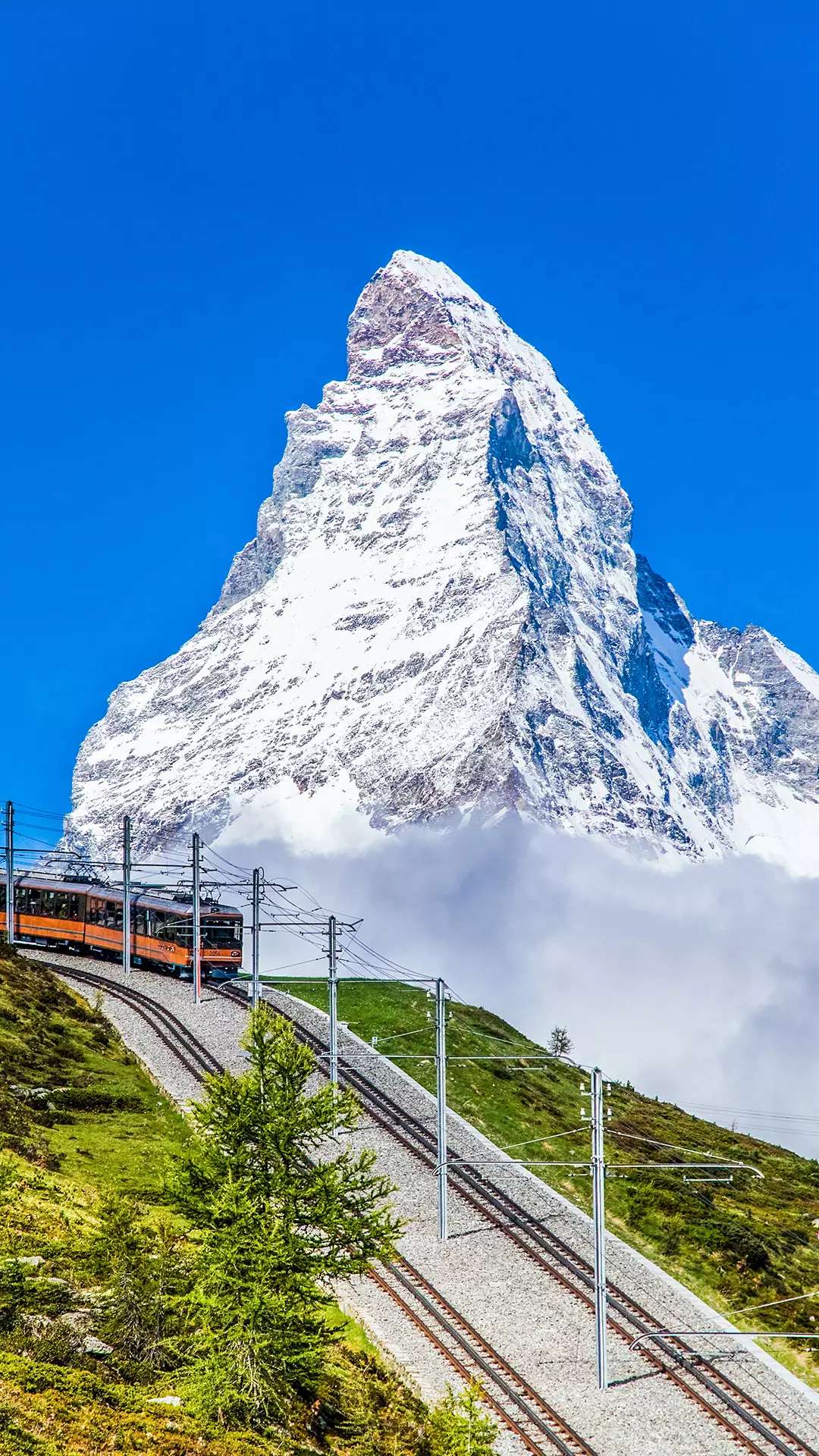 海拔4478米,馬特洪峰是阿爾卑斯山脈中最著名的山峰,位于瑞士和意大利的邊境,附近是瑞士瓦萊州小鎮采爾馬特和意大利亞奧斯他谷的小鎮布勒伊-切爾維尼亞。馬特洪峰的名稱是由德語“Matt”(意為山谷、草地)和“horn”(意為山峰呈錐狀像一只角)組成,由Edward Whymper和Michel Auguste Croz等在采爾馬特當地父子向導大Peter Taugwalder和小Peter Taugwalder帶領下于1865年7月15日由著名的霍里山脊(H?rnligrat)線路登頂成功,但最終只有Edward Whymper和Taugwalder父子成功下撤,其他人均不幸遇難。2015年是馬特洪峰登頂150周年紀念,在2015年7月到8月期間每晚9點到9點半,有沿著霍里山脊點亮馬特洪峰的慶?;顒樱H為壯觀。