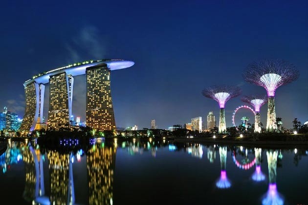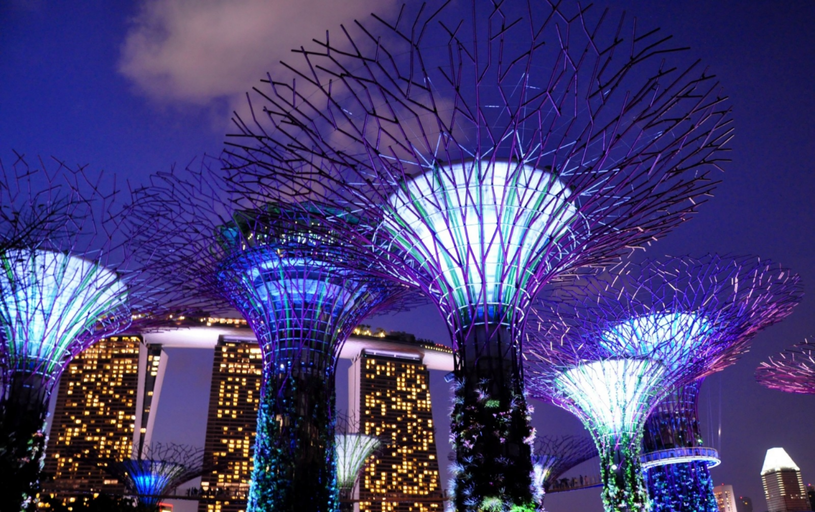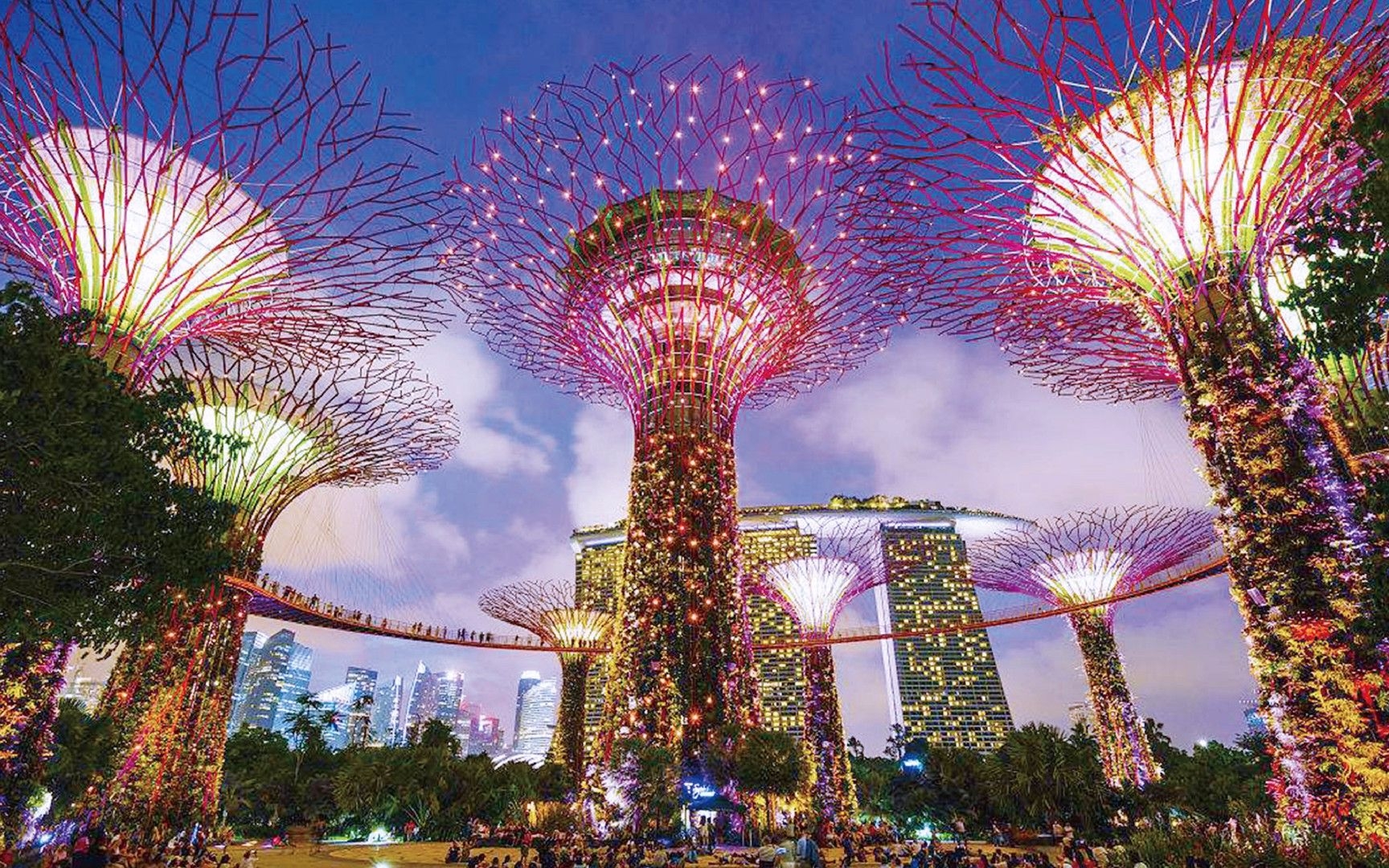新加坡濱海灣花園(Gardens by the Bay)由濱海南花園、濱海東花園和濱海中花園三個風格各異的水岸花園連接而成。