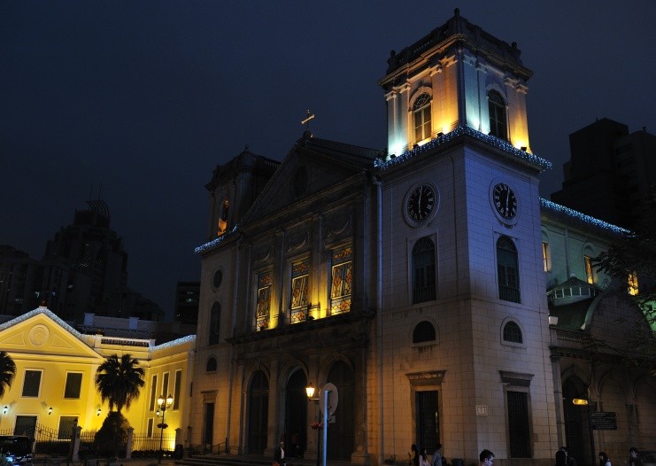 位于大堂前地,主教座堂又稱大堂或大廟,歷史悠久。始建于1567年,本為一幢小型木造的建筑,經過多年的風雨剝蝕,殘破不堪。1849年,天主教集眾捐款,重新改建,今日的外型初具規模。1937年,大堂再次改建為三合土建筑,才構成了今日壯麗堂皇的外觀。