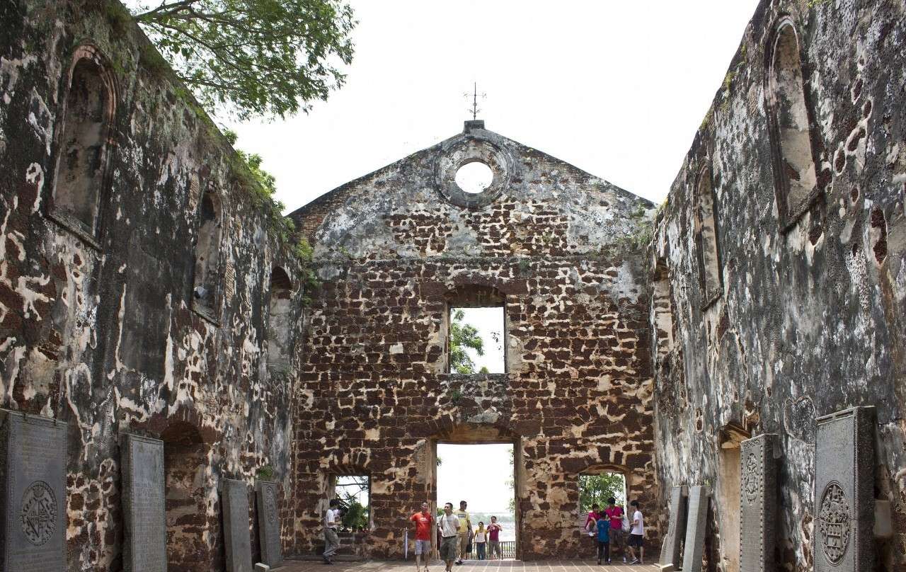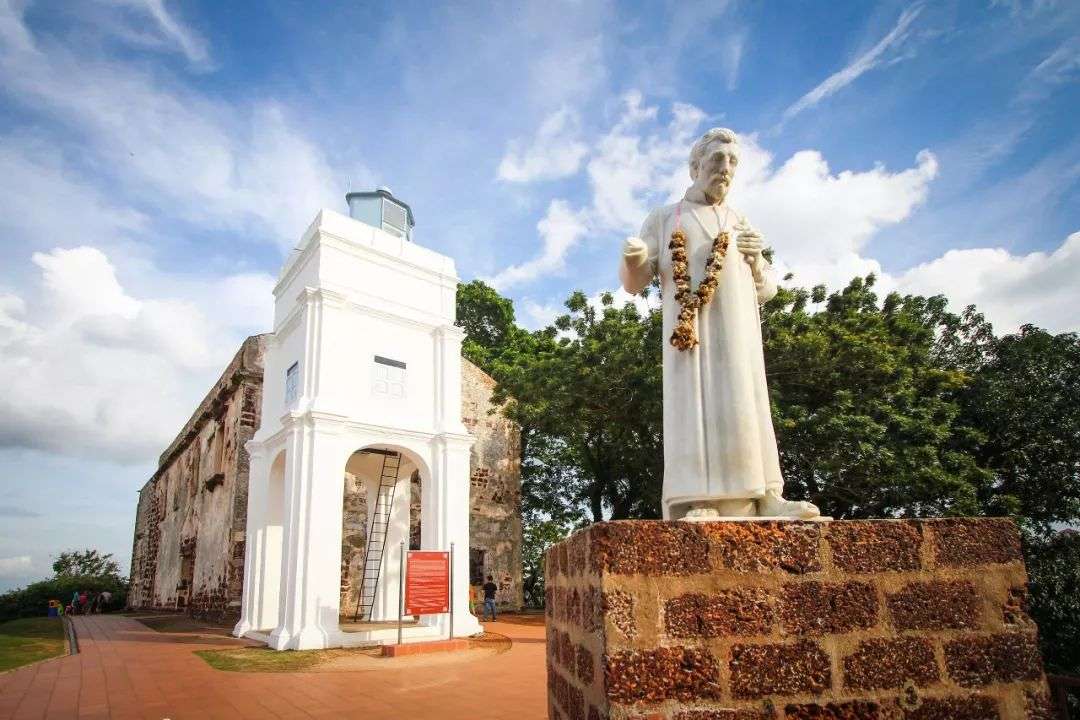 圣保羅教堂位于馬六甲河口的升旗山(又名西山,滿刺加國(guó)王拜里迷蘇拉曾將明成祖贈(zèng)送的金龍文箋在山上勒石樹碑,后改名為圣保羅山),建于1521年,為葡萄牙人所建。著名傳教士圣方濟(jì)各埋葬于此,教堂前豎有圣芳濟(jì)各神父塑像。
