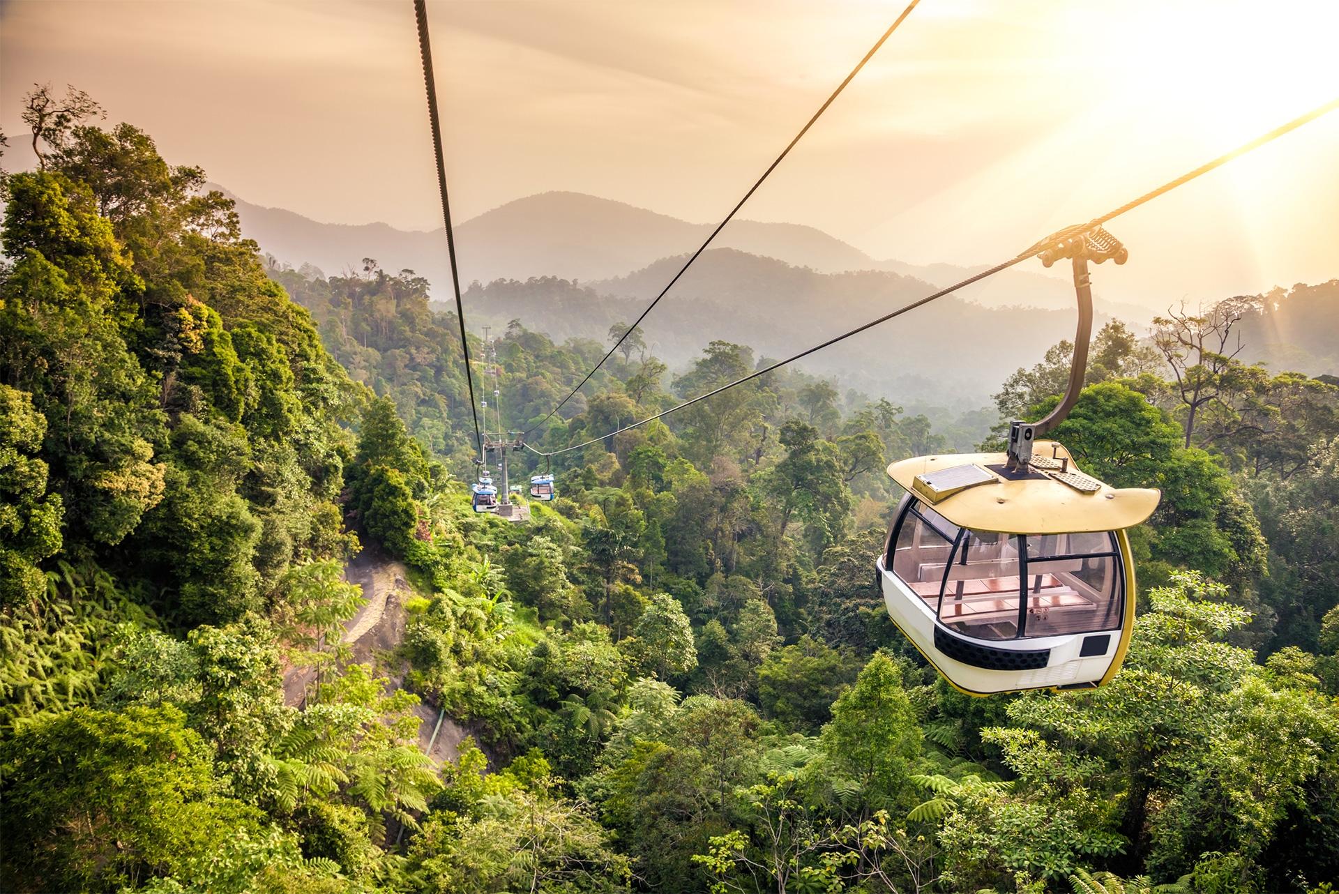 云頂纜車從位于梧桐再也的云頂纜車站出發(fā),直達(dá)美星酒店。云頂纜車由馬來西亞第四任首相拿督斯里馬哈蒂爾·本·穆罕默德醫(yī)生于1997年2月21日主持開幕。云頂纜車以每8人一車廂并在一小時內(nèi)載送2000名乘客上山。它的極速為每秒6公尺,只需大約15分鐘便能完成3.38公里長的登山路程。隨著纜車的緩緩上升,馬來西亞特有的奇花異草,以及各種只有熱帶才有的植物、動物和鳥類躍然眼前。往往纜車坐到半山腰就能看到云霧繚繞,如入仙境,到了山頂,室外也經(jīng)常是云里霧里,看來“云頂”這個名字確實也是有點說法的。