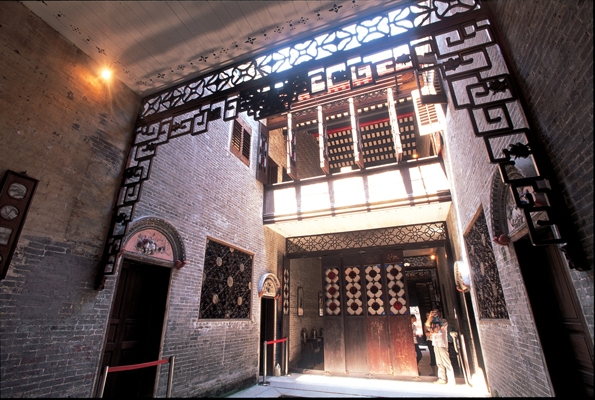 在盧家大屋表演的還包括擁有悠久歷史的佛山剪紙。它源于宋代,盛于明清時期。從明代起佛山剪紙已有專門行業大量生產,并外銷至南洋等地。按其制作原料和方法分別有銅襯、紙襯、銅寫、銀寫、木刻套印、銅鑿、純色等。利用特產的銅箔銀箔,用剪、刻、鑿等技法,套襯各種色紙和繪印上各種圖案,形成色彩強烈、富有南方特色的剪紙。佛山剪紙既有纖巧秀逸,又有渾厚蒼勁的表現手法,具有研究珠江三角洲民俗活動的歷史價值。