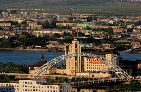 以長約0.9公里的鐵路公路兩用橋——鴨綠江大橋與與中華人民共和國遼寧省丹東市相連。新義州-平壤-咸興-羅先電氣化鐵路的起點,中朝國聯鐵路朝鮮段的第一個車站。版權所有山東聊城聊之旅國際旅行社有限公司,轉載必究!新義州設有一個1.2公里跑道的軍民兩用航空站(SII);亦可經由中華人民共和國遼寧省丹東市的浪頭機場(DDG)前往。
