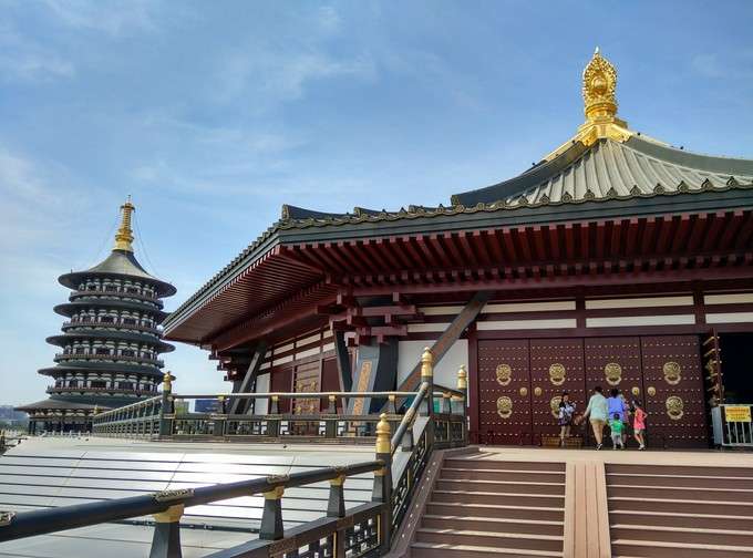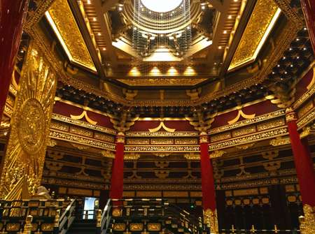 共三層,底層為四方形,四面各施一色,分別代表春夏秋冬四季。中層十二面效法一天中十二個時辰。頂層為圓形,四周環繞九龍雕塑。中間有周長十五米左右的巨型木柱,上下通貫,故此又名為萬象神宮。其建筑技術和施工技術驚世駭俗。