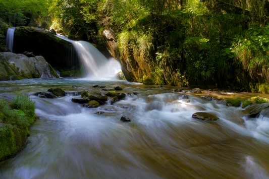 香溪源景區(qū)北距木魚鎮(zhèn)4公里。香溪源是長江西陵峽北岸的一條重要支流,它是一條地下河,發(fā)源于海拔2800米的風(fēng)景埡。香溪源東源出于龍口河、長方河,流長45公里,匯入興山縣東河后注入香溪;西源出于木魚河、當(dāng)陽河、九沖河、流長68.5公里,匯入興山西河后注入香溪。此處香溪源指的是西源,它源于木魚河中上游西岸的跳架溝。