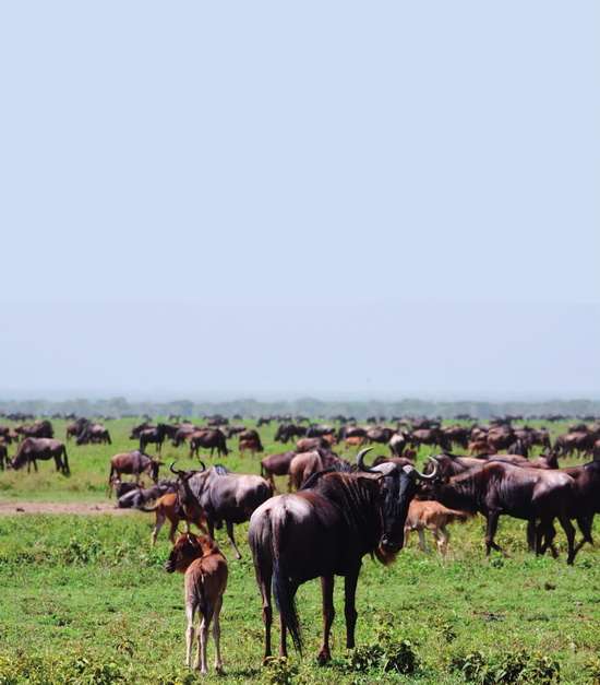 塞倫蓋蒂在馬賽語中是“無邊的平原”。她有著大地奉獻(xiàn)給人類最大規(guī)模的動(dòng)物群落:無數(shù)的角馬(牛羚)、斑馬、湯姆森瞪羚、格蘭特瞪羚、斑鬣狗、長頸鹿以及眾多的獅子、大象、黑犀牛、水牛和花豹等聞名世界的非洲五大獸,還有300多種鳥類,構(gòu)成了世界最大的動(dòng)物自然生態(tài)系統(tǒng)。每年的五六月之間,塞倫蓋蒂的食草動(dòng)物(大約有150萬只角馬和斑馬,30萬只湯姆森瞪羚和3萬只格蘭特瞪羚)從中央平原向西部常年有水的地區(qū)遷徙;到七八月之間其中一部分又從塞倫蓋蒂向馬賽馬拉草原遷徙,浩浩蕩蕩的動(dòng)物大軍形成震驚世界的壯麗景觀。在遷徙旅途中,“千軍萬馬”過馬拉河的景象也可謂是大遷徙的一大亮點(diǎn)。