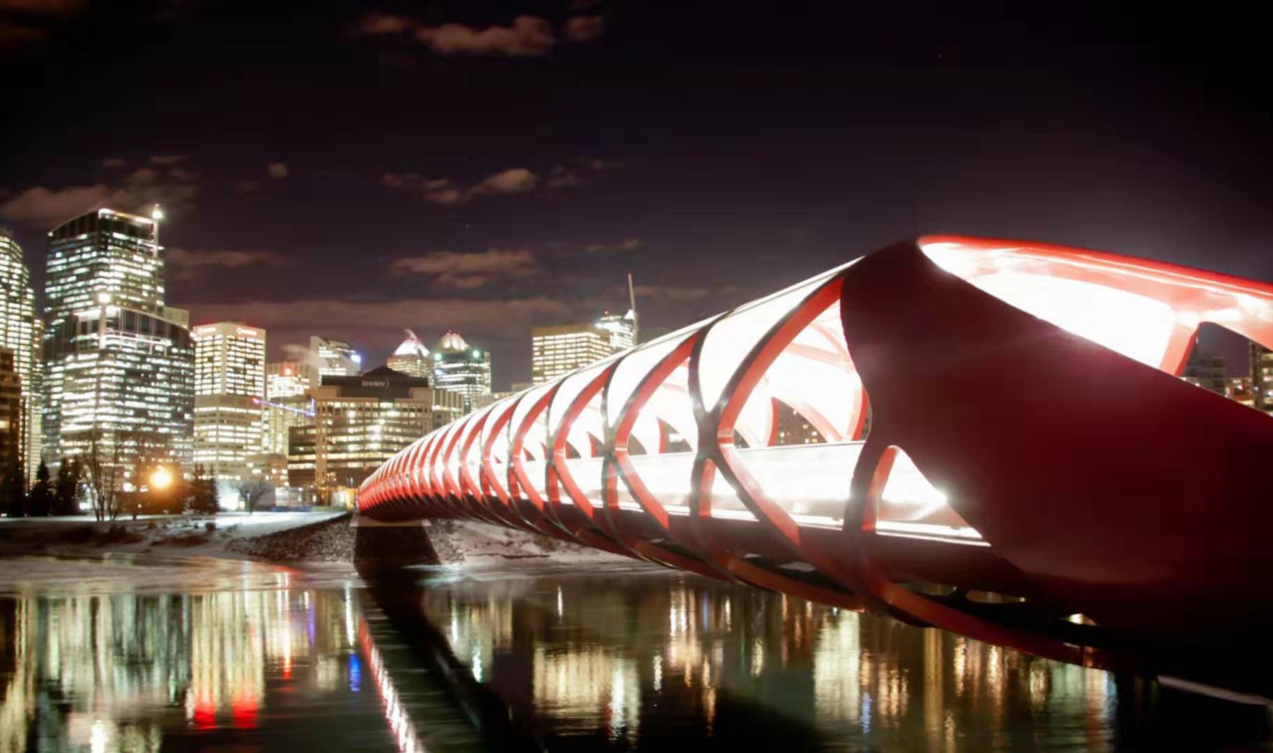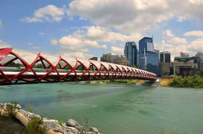卡爾加里市中心擁有北美最大的+15系統,即高架人行天橋系統,全長18公里的62座封閉式人行天橋連接市中心各主要建筑。在冬天,封閉天橋走廊內的暖氣讓人無需暴露在寒冷室外亦可暢行市中心。