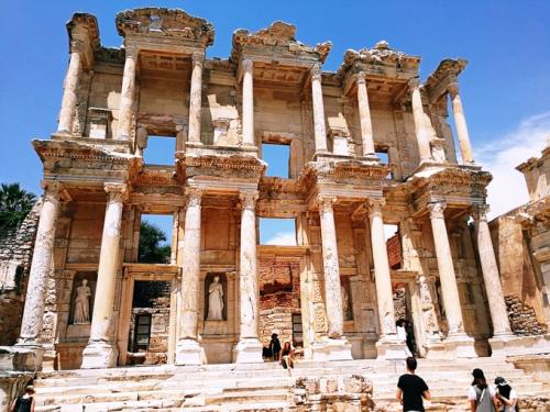 早在公元前6000多年的新石器時(shí)代,以弗所已有人類居住的痕跡。以弗所于公元前10世紀(jì)建城,早期是古希臘城市。在古羅馬時(shí)期很長一段時(shí)間內(nèi),它都是羅馬帝國中僅次于羅馬的第二大城市。公元一世紀(jì)的時(shí)候這里的人口已達(dá)二十五萬,而此時(shí),龐貝已泯滅在維蘇威火山的灰燼中。該城幾經(jīng)沉浮,最終在15世紀(jì)衰落,再也回不到昔日的輝煌了。還好,留下的遺跡已足夠讓我們一瞥舊日榮光。