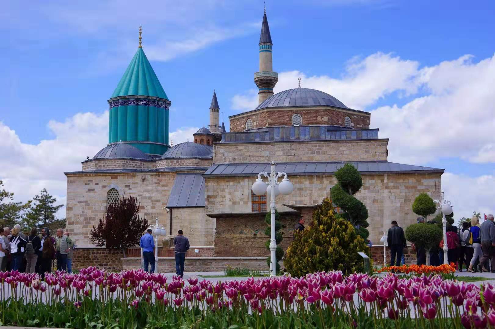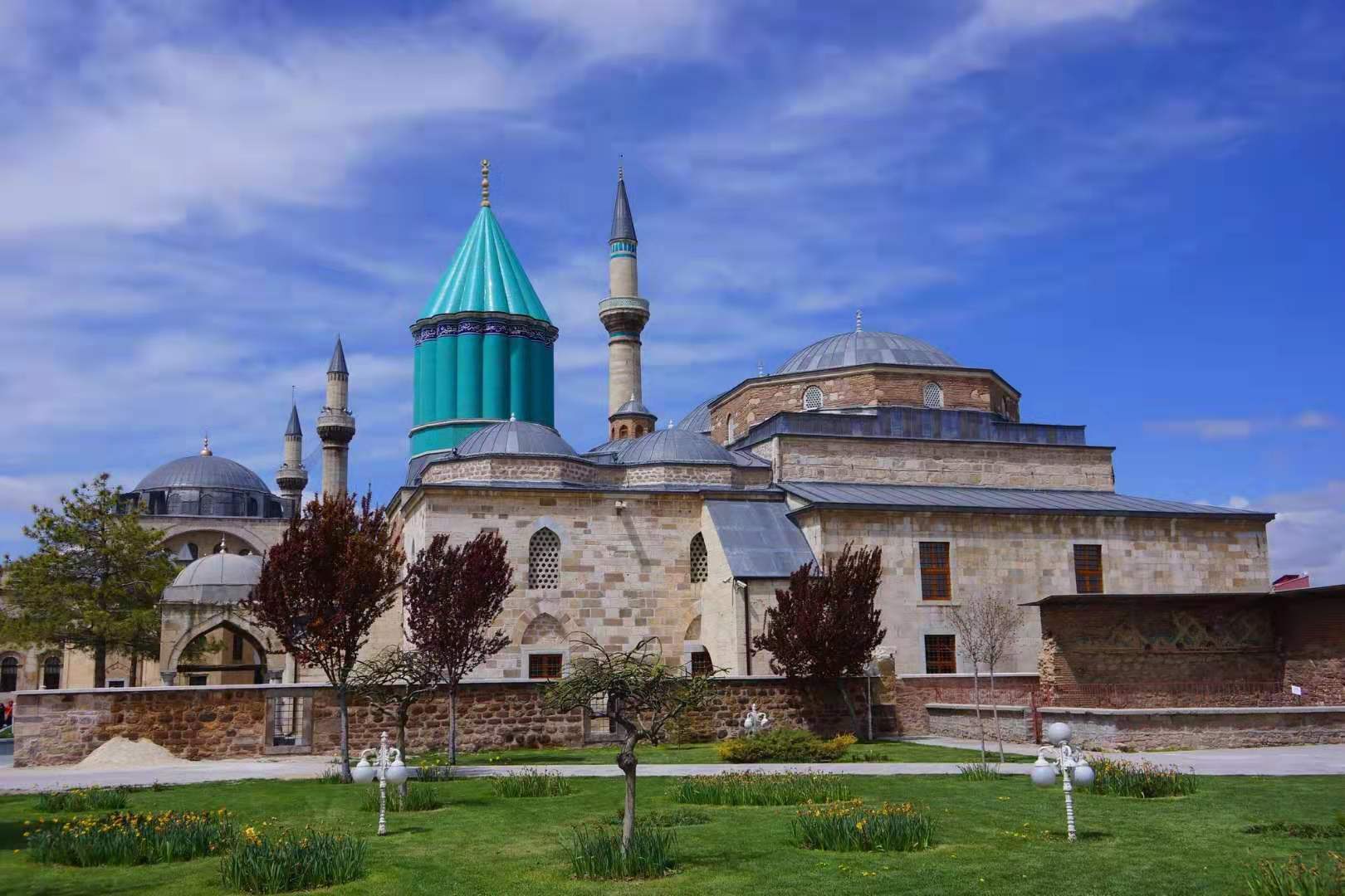 晶瑩剔透的大水晶燈,是棲森一世征埃及時,馬穆魯克傭兵王朝所饋贈的禮品。展覽館內(nèi),也是宗教舞蹈的暗房,有回教托缽僧,陪襯的還有宗教進行時伴奏的樂器、祈禱墊、圖晝手稿及祭服等。入門處的大碗,是收集四月的雨水,祭祀後,把頭浸泡在大碗內(nèi),據(jù)說有醫(yī)療效果,這就是著名的“四月碗”。在這個清真寺旁邊的是塞爾柱皇宮遺跡。