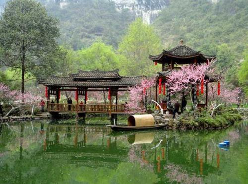 桃花源集秦晉歷史文化、土家民俗文化、自然生態文化、天坑溶洞地下河共生巖溶地質奇觀于一體。桃花源風景區與陶淵明筆下描述的“世外桃源”極其吻合。原中共中央政治局常委、全國人大委員長李鵬親筆題詞“中國酉陽桃花源風景區”。是“遠離塵世喧囂、步入秦晉田園、探尋科學奧秘、回歸綠色天堂”的絕地方。