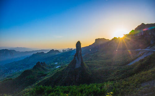 “一炷香”,高約150余米,最小直徑只有4米,此地的巖石的抗壓強(qiáng)度是800千克每立方厘米,它風(fēng)吹不倒,雨打不動(dòng),傲立群峰之中千萬年,守護(hù)著這片神秘的土地。他近觀猶如男根,展示著他威武的雄姿,儼然成了大峽谷中的鎮(zhèn)谷之寶。反映一炷香的美術(shù)作品眾多,以中國博物館協(xié)會(huì)會(huì)員、國家一級(jí)美術(shù)師、全國“畫中華名人故居第一人”、著名畫家拇指先生的《陳連升故里 鎮(zhèn)谷之寶一炷香》最為有名。相傳,這根石柱是天神送給當(dāng)?shù)匕傩盏囊桓y香,如遇災(zāi)難將他點(diǎn)燃,天神看到寥寥青煙,就會(huì)下凡來救苦救難,所以當(dāng)?shù)匕傩辗Q它為“難香”,這難香又長又細(xì),晴空萬里時(shí),一朵白云疊在峰頂,遠(yuǎn)遠(yuǎn)看去就像天上的香火,宛若仙境;陰雨天氣時(shí),升起的一層薄霧,就像一縷青紗,將它打扮得若隱若現(xiàn),嫵媚動(dòng)人。從地質(zhì)學(xué)上講,由于長江水系、清江水系長期交錯(cuò)的影響,不斷地侵蝕,不斷地沖刷,才形成如今陡峭的石柱,由于保存極度困難,所以地球上類似細(xì)長的石柱并不多見,而最長最大的莫過于此。