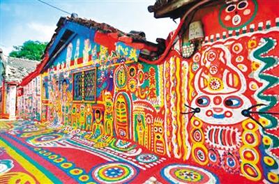旅游傳奇景點「彩虹眷村」,起源于住在臺灣臺中市南屯區嶺東科技大學附近有一處舊眷村的八十七歲老榮民黃永阜,因為「無聊」而拿起畫筆彩將眷村內的巷弄街道當成了天然的畫布,在上頭彩繪了各式美麗的彩虹線條與可愛動物,不僅染亮了小村,在網絡上引起熱烈討論,更形成一股參訪風潮。因他的用色大膽,構圖可愛并充滿童趣,讓到訪者有如置身彩虹世界,故網友稱此處為「彩虹眷村」。