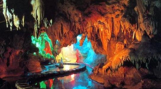 洞中景觀奇異絕頂。石山、石田、石幔、石瀑、石橋、石柱、石旗等景觀,天然自成,比比皆是,恰如天然石景公園。那些諸如“唐僧西行、神象觀潭、觀音坐蓮、王母瑤池、白龍游海、美女照鏡、淑女更衣、金蟾報曉、兄弟稱雄、浪子回頭、猴王探路”等意象景觀,活靈活現,傳神逼真。版權所有山東聊城聊之旅國際旅行社有限公司,轉載必究!尤其那壯觀氣派的“龍宮”,宮中的定海神針,高達29米,比黃龍洞中的定海神針高出1米多,粗幾倍,需幾個人才能合抱。定海神針似雕花門柱,石花燦爛,玉樹瓊花,其景其勢,國內一絕。洞府中還展示了大自然“三界”。“洞府植物界”,洞中遍生石樹、石筍、石藤、石草、石花、石葡萄,種類繁多,可謂植物標本園。“洞府動物界”,有意象中的諸如天上飛的、水里游的、陸地跑的,千姿百態,栩栩如生。這里還曾是古生命的搖籃,洞中有古河床,殘存著45萬年前的貝殼;還有5萬年前的動物腿骨化石,考古專家鑒定那是鹿和豬的骨頭。“洞府非生物界”,無所不有,奇景萬千。石梯田、石壩列列在目。那石幔從“天棚”順著高高的洞壁飄然垂下,高達13米,恢宏大度,勢如瀑布。它更象劇場幕布,任由大自然的鬼斧神工或拉開或閉合。專家們認定,這石幔是中國的唯一,也是亞洲的唯一。還有那乳石音樂更是一絕。形狀各異的鐘乳石,有的成片從洞頂一瀉而下,似瀑布從天而降,洶涌澎湃;有的懸掛在洞壁,象成熟的瓜果;有的從頂棚垂掛,狀似葫蘆一字排開,長短不一卻錯落有致。在這些乳石集中的一個地方,人們用木棒輕輕地敲擊乳石,可以發出不同的音符,可以敲出悅耳動聽的音樂。要是高手,還可以敲出樂曲來。倘若詩圣杜甫聽此樂聲,定會將七絕《贈花卿》末句改成:“此曲只應洞中有,人間難得幾回聞。