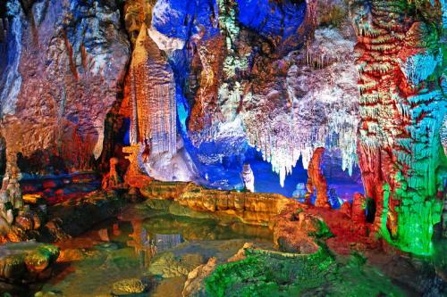 龍宮仙境”是一個鐘乳石正在不斷生長發育著的溶洞,洞內的滴水活動非常活躍且洞內的鐘乳石非常密集,有很多分布在游步道兩側。由隧道、前廳、金龍迎賓廳、龍宮寶藏廳、龍宮仙境廳、龍母后宮和仙人遺址等七部份組成。
