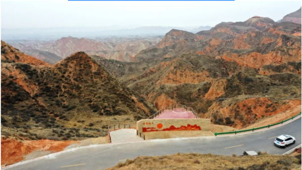 絲路霞光觀景平臺絲路霞光觀景平臺海拔1861米,這里層理交錯、色彩斑斕,連綿的山峰呈現(xiàn)出紅、黃、橙、綠、褐、白、灰等多種色彩,每當朝陽夕落,天邊絢爛的晚霞給群山披上五彩霓裳,呈現(xiàn)出“一輪紅日天邊掛,滿眼霞光照碧峰”的景色。 這里是景區(qū)內最佳拍攝日落的地方,故以絲路霞光命名。