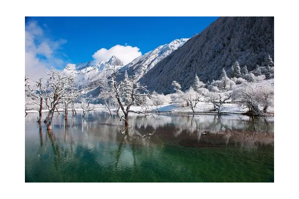 是雙橋溝境內(nèi)最具特色的山之一,距離雙橋溝溝口約8千米左右,海拔4800米。遠(yuǎn)眺過去,像半輪剛剛升起的下玄月,冰雪覆蓋在山上,仿佛清輝閃動(dòng);又如一顆被砍伐后的千年古樹,圈圈年輪清晰可見。近看五色山,巨大的山體鑲嵌著五條長(zhǎng)約1千米的赤、黃、青、藍(lán)、白五色組成的巨大半圓弧巖層,色彩排列極為規(guī)則。圓弧依次而上,大約近30余層。據(jù)說夏天,白雪融化,巖石裸露,陽光下照在下面,反射出五道淡淡光暈,像一道美麗的彩虹,架設(shè)在湛藍(lán)的天空,又像臧家少女脖子上掛的五光十色的瑪瑙項(xiàng)鏈,美麗異常。