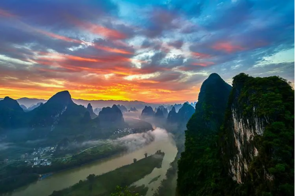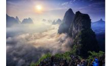 相公山位于陽朔縣興坪鎮(zhèn)內,距陽朔約28公里,距桂林約57公里。登上相公山舉目遠眺,群峰排列有序,蜿蜒流淌的漓江甚是美妙。這里的云海、日出、光影、彩霞吸引著無數攝影愛好者和攝影家。前往相公山有陸、水兩條路可行,可以從陽朔或者桂林到葡萄或白沙下車后再租車直接到達山腳下,也可從陽朔直接租車或自駕車經白沙往右朝古板方向走到達拍攝地。水路從興坪租船經過黃布灘到達山腳下,在步行上山。登相公山一般都要再天亮前爬到山頂,拍攝日出、云海、彩霞