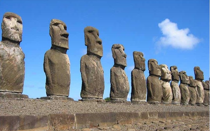 1722年羅格文將軍帶領一幫人登到島上時,發現島上聳立著許多石雕人像,它們背靠大海,面對陸地,排列在海島的岸邊上。每個石像形態不同,大小也不一樣。當時,羅格文對自己看到的一切感到非常驚訝。此后在1770年,西班牙的航海家岡薩雷斯到了這個島上,1774年,英國的航海測量家庫克再次到達這里,他們對島上看到的一切,都感到非常驚奇。