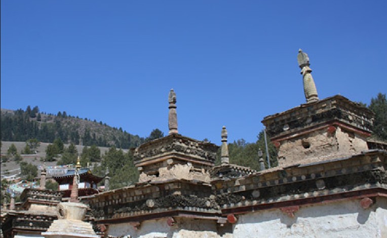 卡瑪多塔林位于類烏齊縣國道317線右側,距縣城25公里。塔林依山位傍水、風景秀麗、古木參天、蒼松翠柏、四季常青。在蔥郁翠柏中有一座別致的小經堂,主供蓮花生大師像,左右各豎有幾根高大的轉經筒。傳說,過去這兒有108個塔,現已恢復和修建的塔有幾十座。其造型各異,別具一格,既有要求嚴格的八佛塔,也有方形怪塔;既有幾米高的大塔,也有不到三米的小塔。