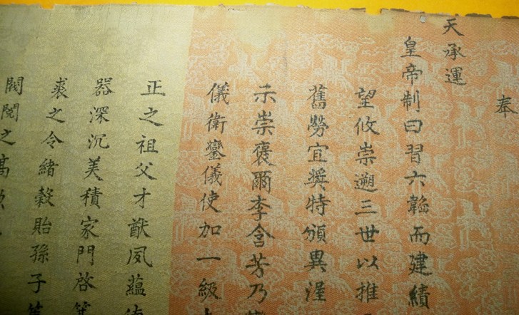 博物館館長劉新華先生介紹,這處“圣旨”博物館為二層仿古建筑,展出面積1000多平方米,館藏明代、清代的詔書、國書、誥封、敕封(通稱為圣旨) 達132道之多,開館展出的“圣旨”55道,以及“偽滿洲國圣旨”和日本、越南、韓國等國家的“圣旨”,并配以明清時期的科舉試題、殿試卷、官場文書、字畫匾牌及用墨魚汁做墨汁密寫在衣衫內的“夾帶小抄”等科舉文物2000多件,反映了當時的政治、經濟、軍事、外交及中國宮廷文化等多種形態。