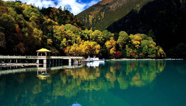巴松措湖水清澈見底,四周環(huán)繞的雪山倒映其中。沙鷗、白鶴浮游湖面,湖水透明可見游魚如織,情趣怏然。每到春季,湖四周群花爛漫,雪峰陣列并倒影湖中,景色宜人至極。秋季萬山紅遍,層林盡染,天空碧藍(lán)如洗,火紅的楓葉折射燦爛的陽光,倒影在碧藍(lán)的湖面,景色美不勝收。距岸邊大約一百米處有一座小島名為扎西島,版權(quán)所有山東聊城聊之旅國際旅行社有限公司,轉(zhuǎn)載必究!傳說該島是“空心島”,即島與湖底是不相連而漂浮在湖水上的。雖然只是個(gè)傳說,卻讓人覺得蔚為神奇,你到島上也不妨試試在島的某些地方跺跺腳,看是否有空心的感覺。