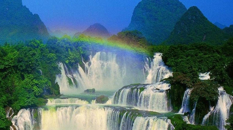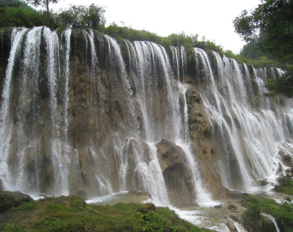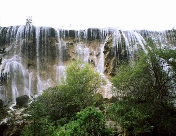 凌空而瀉的瀑布,象銀河倒懸,墜至半空,忽被峭石攔腰斬斷,剎時雪浪飛濺,宛如千萬串?dāng)嗑€的珍珠,紛紛揚揚,沿懸立千紉的絕壁陡然下墜,落進(jìn)不見底的深淵,發(fā)出驚天動地的狂嘯。而河水卻象兇猛的野獸在咆哮,發(fā)出震耳欲聾的吼聲,仿佛整個峽谷在顫動。每到日落西山,“老虎嘴”彩虹繚繞,雪峰頂上緋紅一片,迷離變幻,奇勝不可名狀。