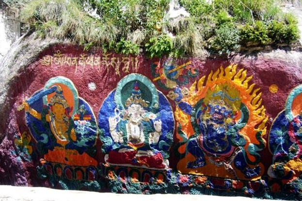 位于墨脫村南則瑪拉山上。是墨脫最大的寺院。建寺時間是在門巴東遷后不久,距今約8代人。據傳是由甘布寺中的活佛甘布建筑的,最初是一座有12面墻和東西南北四門的石木結構三層建筑,內有鍍金銅佛像多座。1950年毀于地震,后重修為東西兩門建筑。仁欽崩寺的建寺時間是在門巴東遷后不久,距今約8代人。這一建筑物很有特色,值得一看,寺院內外景色優美,古木鮮花將這里裝扮的古樸而典雅,讓人沉浸在這古老的文化和美麗的景色之中。