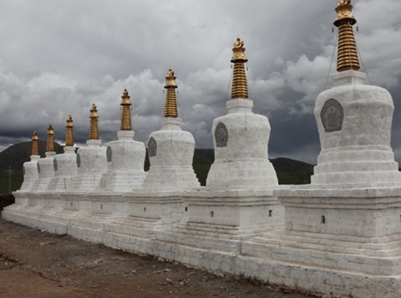 位于青藏公路當雄至那曲約三分之一段路旁,蒼茫的大草原上兀立這一組塔群使草原又帶上了幾分神秘悲壯色彩。據傳當年格薩爾王曾率兵在這里馳騁征戰,他旗下的一名大將夏巴戰死于此。為表彰夏巴的功勛,格薩爾修筑八塔安葬夏巴。