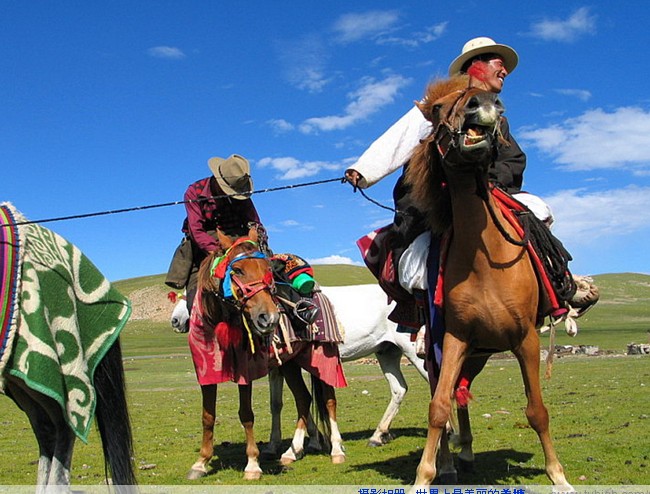 最為引人注目的是牧民的節日盛裝,特別是少女和中年婦女的穿著,她們大多著華麗昂貴的藏袍,頭上、頸上、手上、腰上到處掛滿了飾品,走起路來叮當作響。尤其是在一年一度熱鬧非凡的恰青賽馬會上,整個羌塘草原的驍勇與彪悍完完全全地展現在白云和藍天之下,那像珍珠一樣撒落在草原上的頂頂帳篷,那像金子般清脆亮麗的陣陣歌聲,以及格薩爾傳說與現代流行歌曲融洽相伴的種種和諧,止不住您也要歌之舞之,唱之頌之。