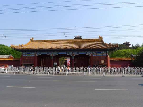 宮門:為外院正門。牌樓式拱券門三座。黃琉璃瓦廡殿頂,琉璃重昂五踩斗栱。門口為清乾隆時期雕鑿的石獅一對。然根據(jù)園方說明牌顯示,現(xiàn)置一對石獅為元朝遺物。
