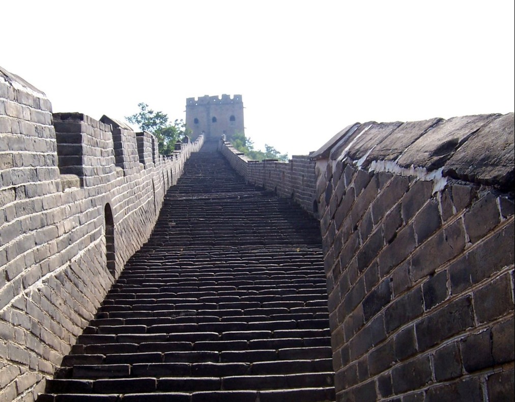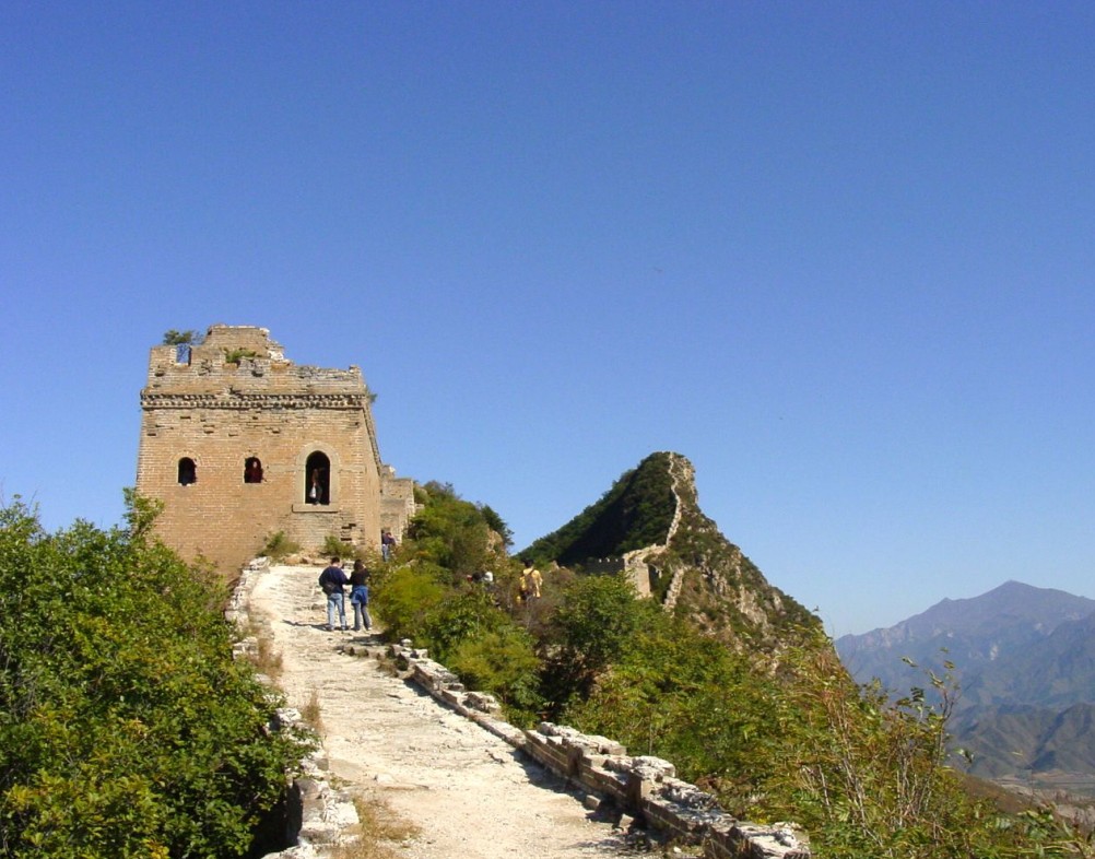 登上第六個敵樓,樓分上下兩層:上層是瞭望臺;下層是成邊將士住房,三面有窗,北邊是射箭孔。整個樓用大方石塊砌成,顯得墩實(shí)、堅(jiān)固,氣度不凡長城的最高處為,需登“天梯”而上。天梯高達(dá)100米,坡度85度,幾近垂直,無膽量的絕難征服。仰頭上望,那磚石砌就的臺階僅可容腳,兩側(cè)懸崖陡壁,中間這一道臺階細(xì)如線,薄如刃,陡如立。