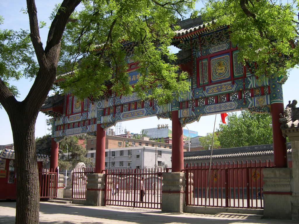山門 為石砌的三券拱門,三個(gè)門洞象征著“三界”,跨進(jìn)山門就意味著跳出“三界”,進(jìn)入神仙洞府。山門石壁上雕刻著流云、仙鶴、花卉等圖案,其刀法渾厚,造型精美。中間券門東側(cè)浮雕中隱藏著一個(gè)巴掌大小的石猴,已被游人摸得锃亮。老北京有這樣的傳說(shuō):“神仙本無(wú)蹤,只留石猴在觀中。”這石猴便成了神仙的化身,來(lái)白云觀的游人都要用手摸摸它,討個(gè)吉利。觀內(nèi)共有小石猴三只,分別藏在不同的地方,另外兩只石猴刻在山門西側(cè)的八字影壁底座和東路雷祖殿前九皇會(huì)碑底座,若不誠(chéng)心尋找,難以見(jiàn)到,故有“三猴不見(jiàn)面”之說(shuō)。