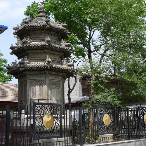 位于東北角塔院內(nèi),造型為八角形,三蹭磚石結(jié)構(gòu)。原塔前還有供奉羅公像的“羅公前殿”和“白云觀重修碑”、“羅真人道行碑”、“粥場(chǎng)碑記”、“云溪方丈功德碑”四塊石碑,現(xiàn)僅存羅公塔。 羅公為江西人,康熙年間來(lái)京,常住白云觀,雍正五年(1727)年逝世,被雍正帝敕封為“恬淡守一真人”。民間傳說(shuō)羅真人創(chuàng)造了剃頭理發(fā)的工具和按摩術(shù),傳入皇宮后得到雍正帝的贊賞,舊時(shí)理發(fā)行業(yè)尊奉羅真人為祖師爺。