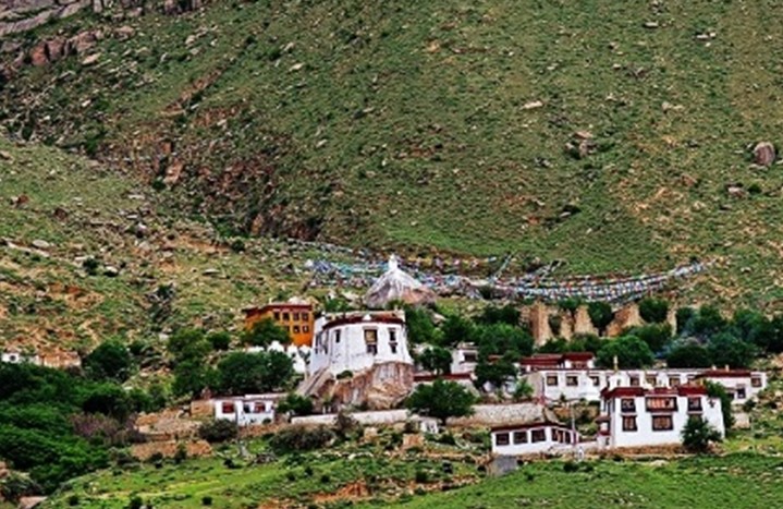 同卡寺全稱為學呢八宿嘎登桑珠林寺,俗稱同卡寺。它位于八宿營縣同卡鄉政府所在地,離縣城250公里,通公路。該寺是由洛巴•江村生格于公元1473年創建的,為功德林拉讓(西藏政府攝政之一)所屬的一座寺廟。