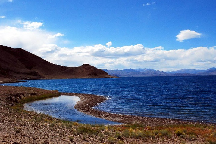 班公湖又稱錯木昂拉紅波,藏語意為“長脖子天鵝”,有世界上海拔最高的鳥島,位于阿里地區日土縣城西北約12公里處,是中國日土縣與克什米爾交界的國際性湖泊,呈東西走向,長約155公里,南北寬約15公里,最窄處僅五米。湖面海拔4240米,水深57米,流域面積為28714平方公里。班公湖為內陸湖,湖水東淡西咸,位于日土縣境內為淡水,西部與克什米爾交界處為咸水