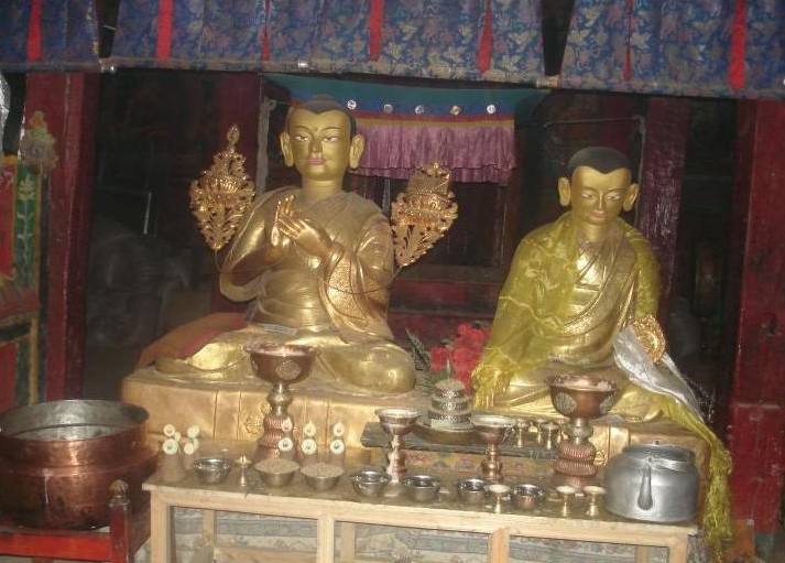 科熟王信仰佛教,用七大包銀子請(qǐng)尼泊和克什米爾工匠於中尼邊境協(xié)噶爾(今定日縣所在地)制作了一尊世間罕見的文殊菩薩像。用車運(yùn)回王宮途中,在杰瑪塘被有著神奇?zhèn)髡f的圣石阿莫穆噶所阻,相傳菩薩像開口說「科加、科加」(意為依附或扎根於此),故科熟王遂命圍繞圣石建筑了造型奇特的殿堂,將文殊像供於殿內(nèi)圣石之上,是為科加寺的最早建筑。拉德王時(shí),用大量珍貴珠寶和白銀,為此像制作有三十朵蓮花的寶座,并為該寺修建大經(jīng)學(xué)友,舉行了大規(guī)模的開光慶典。貢德王碼中文卡執(zhí)政時(shí)助該寺制作銀質(zhì)的金剛持和觀世音像;供於蓮花寶座的兩端,形成科加寺有名的「三至尊」。因該寺位於孔雀河岸邊,為防止洪水危害,扎西德贊執(zhí)政時(shí),動(dòng)員信眾修建了防洪堤壩,開古格王朝筑提之先河。後來歷世古格王及其後裔陸續(xù)添帛佛像、經(jīng)籍、供器,維修或建殿堂,使該寺文物豐富,除憶提出及者外,還有古格王朝時(shí)期的金質(zhì)度母像、響銅釋迦像、《甘珠爾》、《丹珠爾》大藏經(jīng)、整套《薩迦五祖遺高訓(xùn)》等,據(jù)說還有極為珍貴的「前宏期」翻譯的《甘珠爾》經(jīng)。