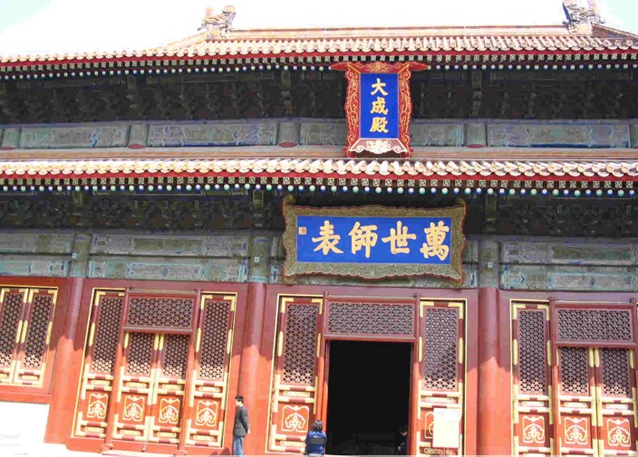 中國元、明、清三朝祭祀孔子的場所。在北京東城區國子監街。元大德六年(1302)建,大德十年建成。明永樂九年(1411)重建。宣德、嘉靖、萬歷年間分別修繕大殿,添建崇圣祠, 清順治、 雍正、 乾隆時又重修, 光緒三十二年(1906)升祭祀孔子為大祀,將正殿擴建。孔廟雖然經過歷代重修, 但其結構基本上仍然保存元代風格。門內院落共有三進,中軸線上的建筑從南向北依次為大成門、大成殿、崇圣門及崇圣祠。有元、明、清三代的進士題名碑198 塊,為研究中國古代科舉制度的重要文獻資料。孔廟從1928年起對外開放,供人游覽。中華人民共和國建立后被列為市級文物保護單位,后為首都博物館。