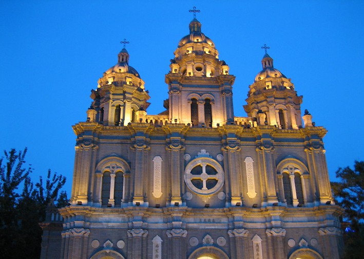 是北京四大天主教堂之一。由意大利籍利類思和葡萄牙籍安文思兩位傳教士創建。明末,2人在四川傳教。清初被清兵虜至北京,在肅王府當差,順治十二年(1655),福臨賜給他們一所宅院和一塊空地(即今址),他們即在空地上建筑一座教堂,即北京城內第二座圣堂(第一座為南堂),也就是最早的東堂。東堂院內,中間為天主堂,坐東朝西,共約30間,堂頂立十字架3座,中間大,兩旁小。堂內有18根圓形磚柱支撐,兩側掛著耶穌受難等多幅油畫。堂南、西有教室,東有一院,內有花池、平房、樓房,為神父住處。東堂內曾保存有多幅宮廷畫師郎世寧繪的圣像,嘉慶十二年(1807年)失火后廢止。1884年,重建羅馬式大堂,在義和團運動中又被燒毀。1904年,用“庚子賠款”重建(法國和愛爾蘭兩國合建),即現在的東堂。東堂院內,中間為天主堂,坐東朝西,面闊25米,共約30間,坐落在青石基上,堂頂立十字架3座,中間大,兩旁小。堂內有18根圓形磚柱支撐,直徑65厘米,柱礎為方形,堂內兩側掛著耶穌受難等多幅油畫。版權所有山東聊城聊之旅國際旅行社有限公司,轉載必究!占地近1萬平方米。為東城區重點保護文物。 北京王府井大街的北段正在進行改造,原先圍繞神秘教堂的圍墻被拆除,吸引了眾人的目光。灰色的歐式尖頂建筑因其古老而越發透出神秘,新鋪就的門前廣場在綠樹環繞中更具濃郁的人文色彩。在周圍的現代化建筑映襯下,王府井天主教堂成了這條大街上的新景點。占地8000多平方米的教堂門前廣場已鋪裝完畢,廣場兩側設有座椅可供行人小憩。在教堂南側,占地1000多平方米、王府井大街上最大的綠地馬上就要露面,它將是一座花卉、灌木、喬木立體種植的花園。由于以玫瑰為主,它有一個好聽的名字——玫瑰園。從玫瑰園流出的一股人造泉水,因為依廣場南側層疊而下,所以名為“疊泉”。整個教堂廣場高出地面1米有余,使其更顯與眾不同。據說,由于完全按西式天主教堂設計,玫瑰園下還會有一個葡萄酒窖。
