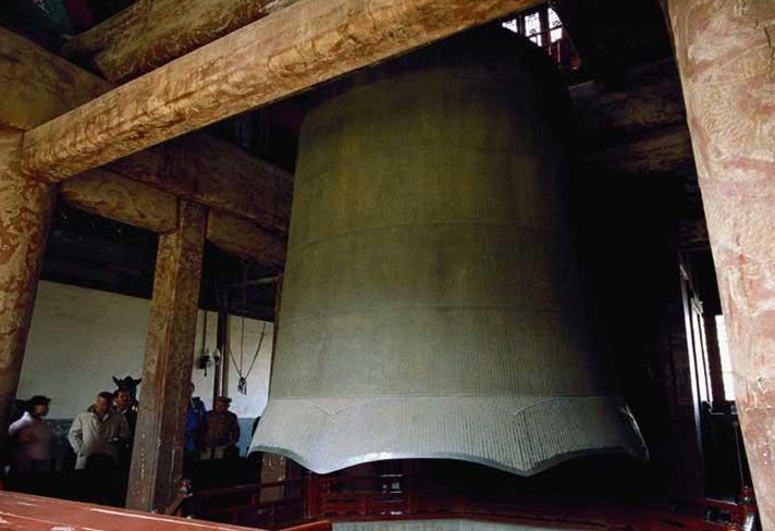 輕擊大鐘,其音圓潤、深沉、古雅;重擊則純厚、洪亮、莊嚴。內行人能辨出1?3?5?Ⅰ等完全諧和音組成的泛音系列。無論該鐘的音質、音色還是傳播距離,在世界古鐘之林中,都名列前茅。