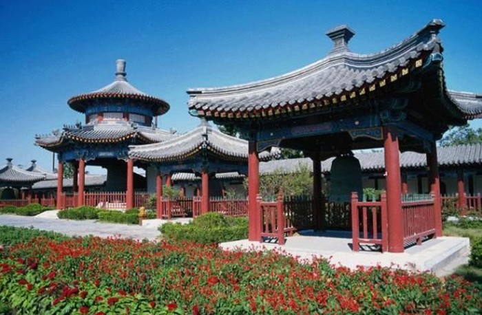 大鐘寺曾是清朝皇帝祈雨的地方,寺院坐北朝南,由南往北依次為山門、鐘鼓樓、天王殿、大雄寶殿、后殿、藏經樓、大鐘樓和東西翼樓,另外還有六座配廡分布在兩側。大鐘樓是寺內獨具特色的核心建筑,它矗立在一座巨大的青石砌成的臺基上,整個鐘樓上圓下方,象征“天圓地方”,青石臺基上砌有八角形“散音”池,在它的作用下,輕擊大鐘時,方圓百余里均可聽到純厚、古雅的鐘聲,余音可持續3分鐘之久。