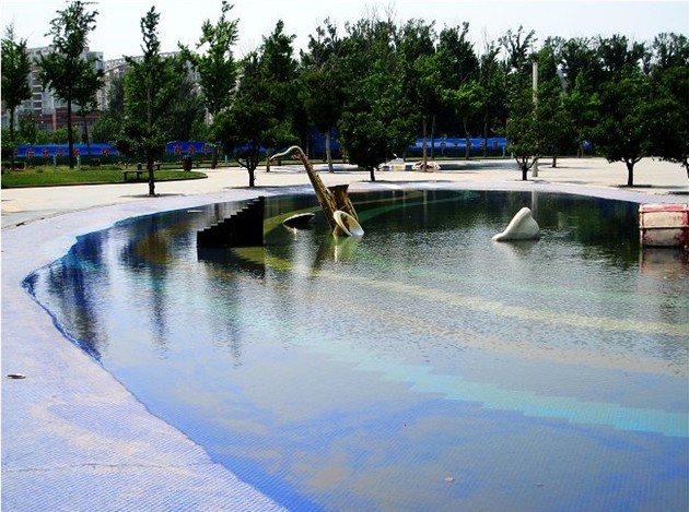 縱搖擺共設計4組,噴高為6-8米,分別布置在水池120米為邊的正方形上。噴水就像翩翩起舞的少女,忽兒獨舞,忽兒對舞,組成一排舞動的水幕。寓意廊坊一片生機勃勃的景象。