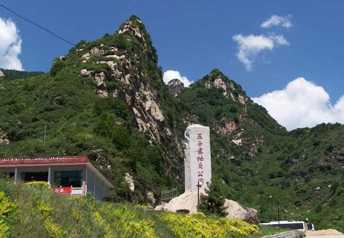 本區(qū)在地質(zhì)構(gòu)造上屬于華北古陸太行山中段東麓,區(qū)內(nèi)廣泛出露中、下元古界變質(zhì)巖系,其巖性主要為片麻巖、變粒巖、角閃片巖、斑狀花崗巖等。由于新生代喜馬拉雅運動的強烈抬升和差異斷塊活動。造成了平的華北平原(海拔幾十米)與高聳的太行山的強烈對比,形成了一系列相對高差較大的陡峭山峰,本公園就處在由古老變質(zhì)巖基礎(chǔ)上發(fā)育起來的斷塊中山地區(qū),海拔1000-2150米,由于斷塊構(gòu)造形成了景區(qū)內(nèi)山地溝深坡陡、山勢雄奇險秀,峽谷多而幽險。五岳寨主峰呈五峰獨立之勢,如一組巨大的盆景被太行山當胸托起。主峰1946.5米,最低峰亦1880米以上。山勢陡峻、雄險,東南側(cè)陡崖壁立,直垂谷地深達數(shù)百米。僅十幾平方米的頂峰巖石平臺,三面臨萬丈絕壁、奇險無比。站在峰頂極目四望,蒼茫中天地一色,千山萬嶺盡收眼底,讓人真正體會到“會當凌絕頂,一覽眾山小”的境界。五岳寨地質(zhì)資源豐富,山形地貌奇特,猴頭峰、石駝峰、鴛鴦石、將軍石等許多山峰奇形怪狀,擬人似獸、栩栩如生。