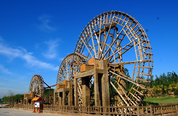 景觀建設包括親水、雕塑和配套三大部分,其中最具特色的為“一鐵塔、二雕塑、三風車、四水車”等大型作品。“一鐵塔”,即觀摩塔,主體高49米,總高60米,為慶祝建國60周年設計打造;“二雕塑”,即嫦娥奔月、后羿射日兩個極具地方文化內涵的雕塑;“三風車”,建設中西文化相結合的三座大型原生態風車;“四水車”,建設四座原生態水車群體。
