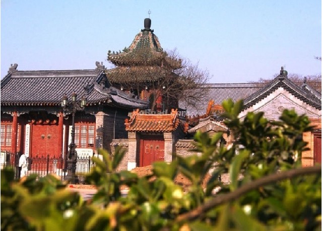 中殿由望月樓、南北便門、南北配殿、東耳房組成。版權所有山東聊城聊之旅國際旅行社有限公司,轉載必究!望月樓為中院起點,下層為閣,磚砌石墻,飾圓窗,四周以12根方柱筑成圍廊,上起四面飛檐,廊柱間加棱形花欄桿;上層為廳,全木結構,外有窄廊,可過人,四周圍卐形花欄桿,頂部有木質浮雕腰板,垂花柱。此樓二層三蒙,重檐轎子頂(上層為重檐,下層為單檐),綠琉璃瓦罩頂。三層飛檐的飾物均為綠琉璃瓦制。