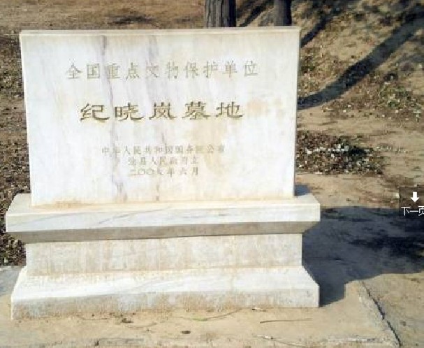 紀曉嵐墓前那通刻有御制碑文的墓碑是最有力的一個證據。據朱珪為紀曉嵐所寫的《墓志銘》記載,紀昀逝世之后,皇帝下旨“加恩賞陀羅經被,派散秩大臣德通帶同侍衛十員前往賜奠,并賞庫銀五百兩,經理喪事”。嘉慶皇帝親撰祭文和碑文。據地方志和口碑記載,第二年(嘉慶十一年1806)四月十九日,紀曉嵐和馬太夫人合葬于獻縣北村新阡。所謂每50里埋一墳的說法,純系傳言,不足為信。