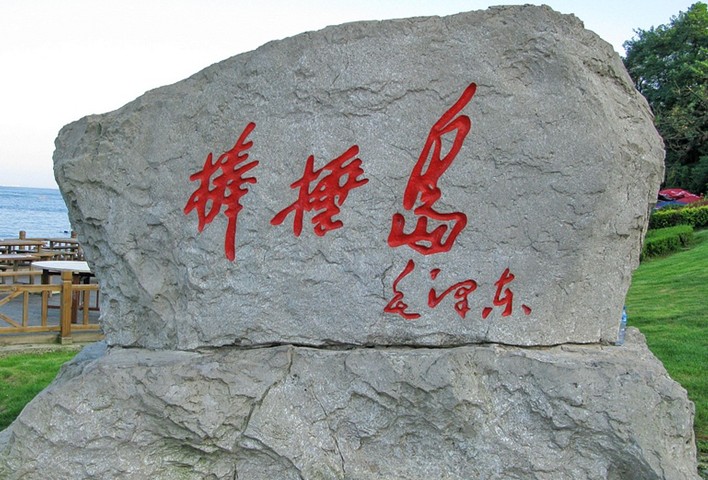 葉帥詩詞與毛主席詩詞基本格調比較相似,所不同的是,毛主席的詩詞博大精深,長于大筆揮灑勾畫,葉帥的詩詞開闊昂奮,以攝取特寫鏡頭見長。因此,毛主席平時就喜歡葉帥的詩詞,稱贊“劍英善七律”,尤其十分欣賞氣勢恢弘、寓意深刻的《遠望》這首詩。毛主席不僅能準確地背誦,而且在1965年12月26日72歲誕辰時,欣然命筆把這首詩抄贈給前去探望他的兒子岸青與兒媳邵華,版權所有山東聊城聊之旅國際旅行社有限公司,轉載必究!激勵他們努力學習馬列主義,學習老一輩革命家的斗爭精神。毛主席的這一手書,恣意縱橫,一氣呵成,其布白、字體無不體現出他老人家書法的慣常神韻,不拘一格,大氣磅礴,給人一種耳目一新、身心頓受強烈震撼的感覺,其中“棒棰島”三個字,不啻此作中的生花妙筆。1977年4月6日,毛主席手書《遠望》在《人民日報》第一版公開發表,同時還刊有《葉劍英同志關于毛主席手書〈遠望〉詩的說明》和毛岸青、邵華的文章《重讀〈遠望〉志更堅》。 1995年底至1996年上半年,大連棒棰島賓館對入門處進行整修,建立大框門面,門梁上選用什么字體?有人想到毛主席抄錄的葉帥詩中有“大連棒棰島”字樣,便委托負責工程施工的大連盛大建筑裝飾有限公司臨摹下來,放大鑲嵌上去。可是,毛主席抄錄《遠望》詩時沒有落他自己的名字,為了讓所有注意棒棰島賓館大門的人都知道這幾個字系毛主席所寫,便從別處選取毛主席題詞的落款“毛澤東”三個字補綴上去。