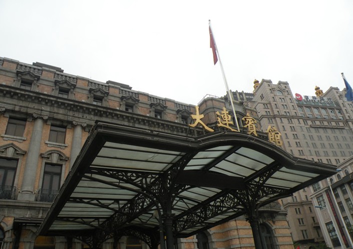周圍建筑 大多建于本世紀初,有羅馬式的、哥特式的、文藝復興風格和折衷主義等,歐味很濃。玉石鋪裝的中心圓臺典雅醒目;廣場周圍的建筑多是日俄時期修建,這些建筑現大部分被金融機構使用,所以也是大連市的金融中心。 廣場對面是大連賓館,三星級。它建成于日本人統治時期的1909年,是大連當時最高級的賓館,叫大和旅館。與它同樣名字的賓館在旅順還有一個,但比這座賓館小得多,末代皇帝博儀和他的夫人婉容在那里住過。