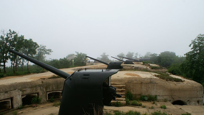 那它又為何稱作“百發不中”呢?主要是它的位置相當優越,大家看,整個炮臺前面為懸崖,大海后面有條山溝與黃金山相隔。用當時的炮鏡從海上觀察會產生錯覺,誤認為它與黃金山同在一個點上,因此有很大的隱蔽性。版權所有山東聊城聊之旅國際旅行社有限公司,轉載必究!從海上炮擊稍近炮彈會落到懸崖下,稍遠又落到后面的山溝里,很難命中這個寬度僅有50米的岸炮陣地,所以當時的軍事家稱這座炮臺為“百發不中”我們現在看到的這些大炮是蘇聯紅軍駐防旅順時留下的。
