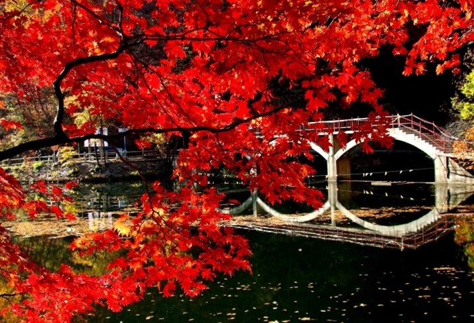 森林公園是一條峽谷和一條小河,水少季節就是小溪。夏季雨后看溪瀑和滿山蔥翠,但秋季紅葉才是關門山的招牌景致。